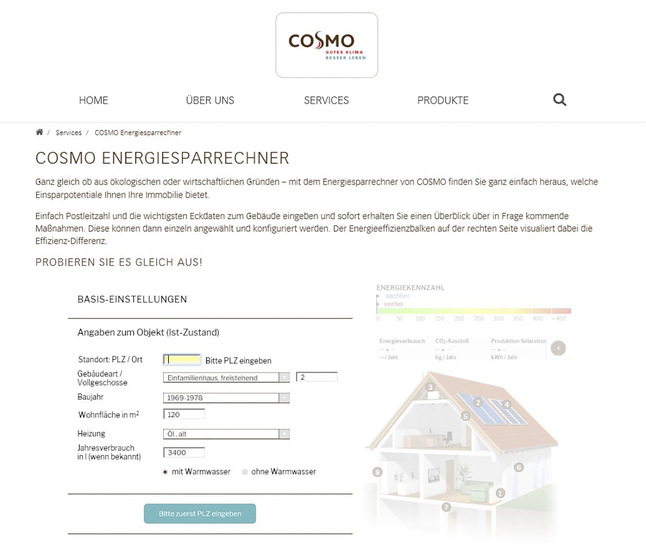 Im Zuge der Energiewende rückt auch die Energieeffizienz von Wohngebäuden zunehmend in den Fokus. Am 1. November 2020 ist das Gebäudeenergiegesetz in Kraft getreten und setzt damit die EU-Gebäuderichtlinie in deutsches Baurecht um. Ziel ist bis 2050 ein klimaneutraler Gebäudebestand. Experten empfehlen hierzu, Bestandsgebäude einem genauen Energieeffizienz-Check zu unterziehen und so versteckte Energiefresser aufzudecken. Hier verbirgt sich oftmals mehr Einsparpotential als zunächst vermutet. Einen informativen Überblick liefert der neue Energiesparrechner auf der Cosmo-Website.