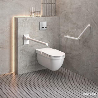 Stützklappgriffe sehen in der Regel sehr stigmatisierend aus. Der diskrete Stützklappgriff Be-Line hat klare Linien. In abgesenkter Position, mit seiner abgerundeten Form und seiner ergonomischen, flachen Vorderseite, die ein Verdrehen der Hand verhindert, stellt er eine wertvolle Unterstützung für Senioren und bewegungseingeschränkte Personen dar.