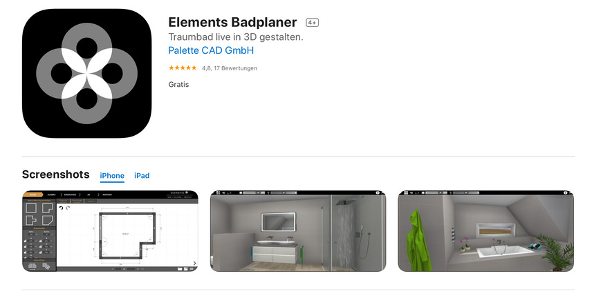Die App „Elements Badplaner“ macht die Badkonzeption besonders anschaulich. Nach