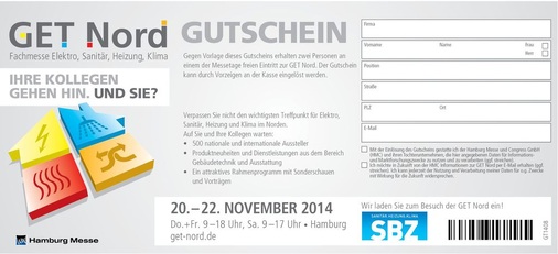 Auch wer keine Member Card hat, kann die GET Nord ohne Eintritt zu bezahlen besuchen: Mit dem nebenan abgebildeten Gutschein erhalten zwei Personen an einem der Messetage freien Eintritt zur GET Nord. Der Gutschein (eine Kopie wird auch akzeptiert) kann durch Vorzeigen an der Kasse eingelöst werden. Ohne Gutschein kostet eine Tageskarte 15 Euro und eine Dauerkarte 24 Euro. Die Messe ist am Donnerstag und Freitag von 9.00 bis 18.00 Uhr und am Samstag bis 17.00 Uhr geöffnet. Weitere Infos und die aktuelle Ausstellerliste gibt es auf