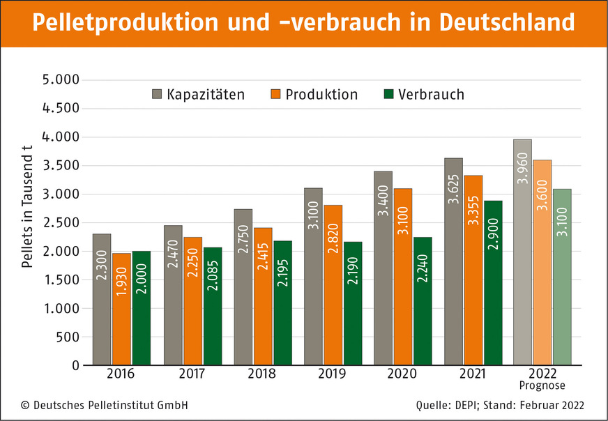 So viele Holzpellets wurden 2021 produziert und verbraucht