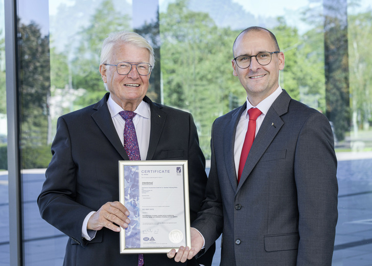 Ebenfalls ein Meilenstein für Peter Tornow (links im Bild) und Stefan Ehrhard: Als einzige Verbundgruppe der SHK-Branche erhielt Interdomus Haustechnik 2020 die Zertifizierung nach DIN EN ISO 9001:2015. Sie bescheinigt, dass die Prozesse und Dienstleistungen der Verbundgruppe den Anforderungen an das Qualitätsmanagementsystem entsprechen.