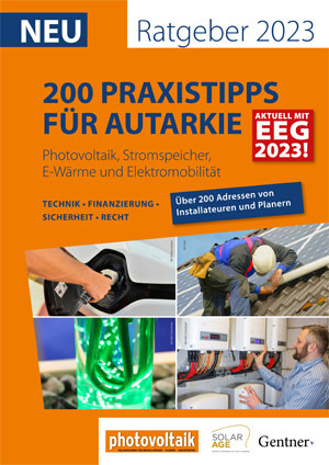 Der Ratgeber 2023 „200 Praxistipps für Autarkie“ steht online als PDF nach kurzer Registrierung zum kostenlosen Download bereit. Er wurde speziell für private und Gewerbekunden entwickelt und enthält viele Tipps rund um die solare Eigenversorgung. Neu in dieser Auflage sind umfangreiche Trendberichte zu den Innovationen bei Solarmodulen, Wechselrichtern, Speicherbatterien und E-Mobilität. Das Werk hat 187 Seiten.