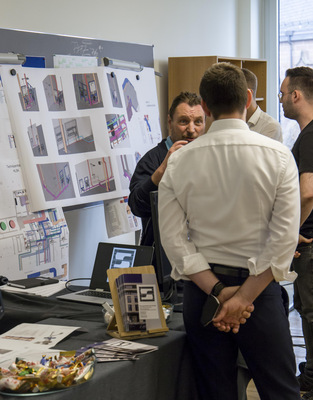 An die Ausstellung schloss sich ein lockeres Get-together von Aussteller- und Lehrer*innen an an, wo man bei Fingerfood und Getränken ehemalige Schüler*innen wiedertreffen konnte, Fachgespräche führte, neue Kontakte knüpfte und sich über die neuesten Entwicklungen in der Branche austauschte.