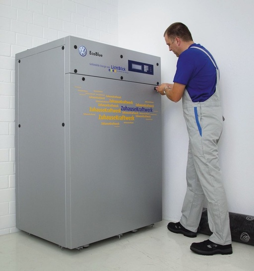 Volkswagen wird die Blockheizkraftwerke „EcoBlue“ produzieren (20 kW elektr./34 kW therm.), die von Gasmotoren aus eigener Fertigung angetrieben werden.