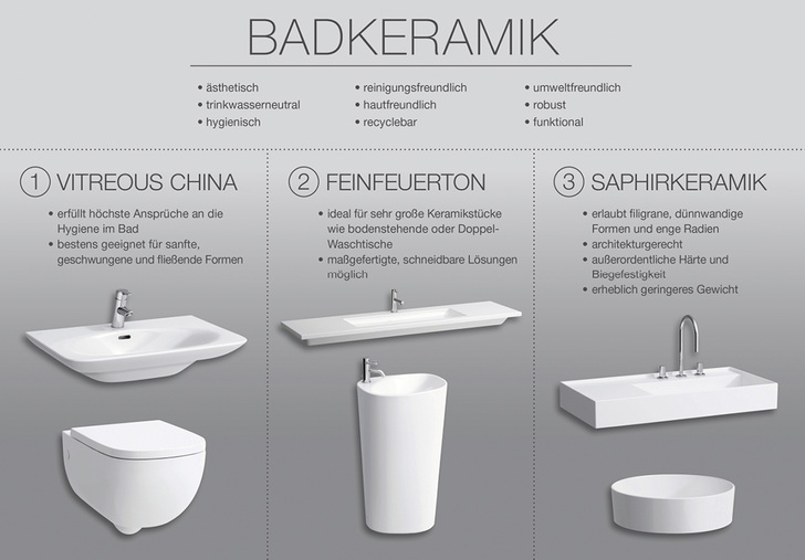 Die starke Stellung von Keramik in Bad und WC hat unzweifelhaft praktische, ästhetische und auch funktionelle Gründe – nicht zuletzt ist das Material hier der Jahrhunderte lang erprobte Traditionswerkstoff. „Die Tatsache, dass andere Materialien im Bad eine gewisse Präsenz gewonnen haben, ist in der Regel einzelnen Spezialitäten geschuldet – aber nie der universellen Badtauglichkeit dieser Lösungen“, sagt Michael Kindl, Managing Director von Laufen. Der Hersteller geht unterschiedliche geforderte Lösungen jetzt mit unterschiedlichen Keramiken an. Zuletzt hinzugekommen: die Saphirkeramik, Spezialist für definierte Kanten und dünne Wandungen.