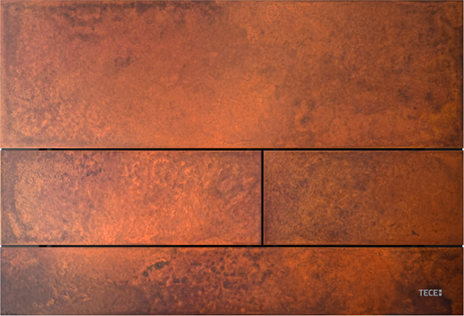 Tece, 4.0-D96: TECEsquare in der neuen Oberfläche Rusted Steel (Bild) verleiht dem Bad einen besonderen Akzent. Mit dem schmalen WC-Modul TECEprofil Compact 320 lassen sich kompakte Einbausituationen und Eckeinbauten platzsparend lösen.