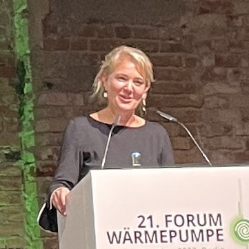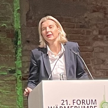 Über die Rolle der Wärmepumpen im Stromnetz von morgen sprach anschließend Barbie Kornelia Haller, Vizepräsidentin der Bundesnetzagentur. Sie fasste die ab Januar vorgesehenen neuen Regelungen für die Einbindung steuerbarer Verbraucher, wie Wärmepumpen und Ladestationen, in die Verteilnetze zusammen.