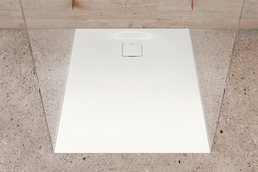 Mit Solidlite stellt Kaldewei eine Duschflächentechnologie vor, die auf einem Verbundmaterial mit recyceltem Glaskern basiert. Die Konstruktion ermöglicht eine reduzierte Materialstärke und ein geringeres Gewicht. Solidlite-Duschflächen eignen sich für verschiedene Einbausituationen wie beispielsweise bodenebene Installationen oder die Montage auf Tragfüßen.