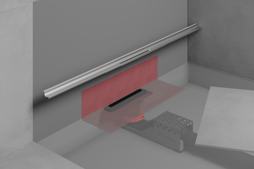 Die Duschrinne Tecedrainway wurde für eine dezente Integration im Übergang zwischen Wand- und Bodenfliesen entwickelt. Sie zeichnet sich durch einen sehr schmalen Ablauf und großzügige Justiermöglichkeiten aus. Der Ablauf lässt sich beliebig ausrichten, unabhängig vom Anschlusspunkt der Abwasserleitung.