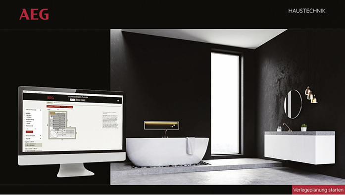 Der „Thermo Boden Planer“ von AEG Haustechnik ermöglicht die zeitsparende Planung einer elektrischen Fußbodentemperierung. Mit dem Online-Programm fertigt der Anwender in fünf Schritten einen richtig dimensionierten und auf die individuellen Kundenbedürfnisse zugeschnittenen Verlegeplan, inklusive Stückliste mit allem erforderlichen Zubehör und Kostenkalkulation. Die Software eignet sich für alle Raumformen und Grundrissplanungen mit Raumgrößen bis ca. 45m². Mehrere Räume eines Objekts können erstellt, mit einem kostenlos angelegten Account gespeichert, jederzeit wieder geladen und bearbeitet werden. Eine lokale Datenspeicherung und Ausdrucke im PDF-Format sind möglich.