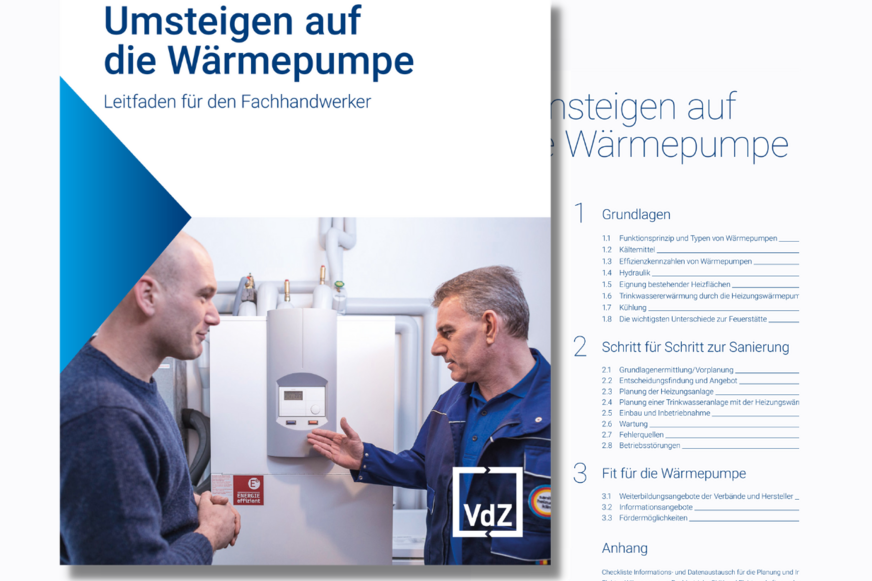 Der VdZ-Leitfaden „Umsteigen auf die Wärmepumpe“ liefert die wichtigsten Informationen und Anleitungen. Besonders Fachhandwerkern ohne Erfahrungen in der Installation von Wärmepumpen soll er den Umstieg von klassischen Feuerstätten erleichtert, indem zentrale Unterschiede, aber auch Gemeinsamkeiten thematisiert werden. Der Leitfaden gibt dazu einen Überblick über nötige Anpassungen bei Planung, Installation und Wartung sowie auf Weiterbildungs-, Unterstützungs- und Informationsangebote.