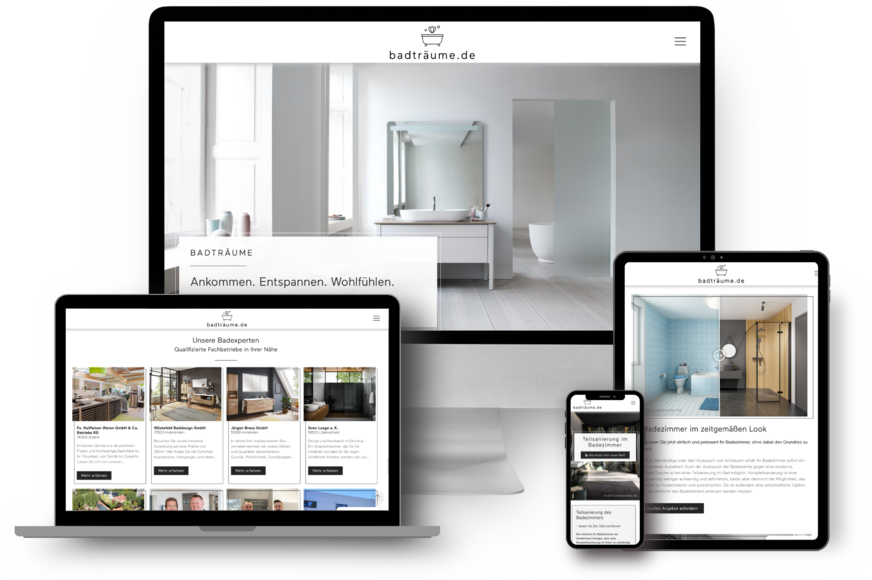 „Die Verunsicherung und Zurückhaltung bei den Kunden ist nach wie vor groß, viele sind zögerlich im Hinblick auf die Investition in die Badgestaltung.“ erklärt Bad + Haus Geschäftsführer Meinolf Buschmann. „Es ist notwendig, wieder mehr in die Kundenansprache zu investieren. Darum bieten wir unseren teilnehmenden Partnern aus Industrie und Handwerk über badträume.de ein Full-Service Angebot für die regionale Online-Vermarktung. Das Ergebnis: Qualifizierte Kundenanfragen einer klar definierten Zielgruppe für unsere teilnehmenden Fachhandwerker und -händler, und mehr Sichtbarkeit für die SHK-Betriebe.“