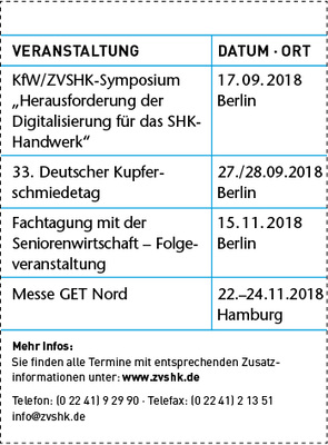 Die SHK-Berufsorganisation hat mit der SSI Schäfer Shop GmbH eine Vereinbarung getroffen, die Mitgliedsbetrieben beim Kauf von Büro- und Werkstatteinrichtungen Sonderkonditionen einräumt. Das Sortiment umfasst über 30 000 Produkte. Als Vergünstigung gibt es 12 % Rabatt auf den Nettoauftragswert sowie 3 % Skonto bei Zahlung innerhalb von 14 Tagen (30 Tage netto). Die versandkostenfreie Lieferung gilt bis Parterre hinter die erste verschlossene Tür. Weitere Infos bekommen Mitgliedsbetriebe per Log-in unter www.zvshk.de (als Suchbegriff den Quicklink QL79116495 eingeben).