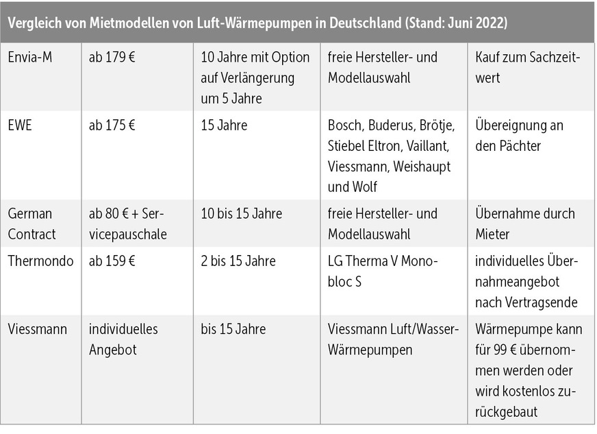 Bereits jetzt sind Mietmodelle für Erneuerbare interessant. Die gibt es für Solaranlagen wie beispielsweise von DZ4, Enpal, Yello und Eigensonne. Wärmepumpen zur Miete bieten an: Envia-M, EWE, German Contract und Thermondo. Auch Industriepartner des SHK-Handwerks wie Bosch oder Viessmann bieten Mietmodelle für Erneuerbare an. Als Vorteil für das Mieten einer Solaranlage – das Gleiche gilt für die Wärmepumpe oder andere Energieträger – nennt Kai Janßen den Wegfall der Anschaffungskosten, keine Reparatur- und Wartungskosten und weniger Bürokratie. Er ist für den Anbieter gruenes.haus tätig. Darüber hinaus sei aber Planungssicherheit gegeben und weniger Aufwand zu erwarten.