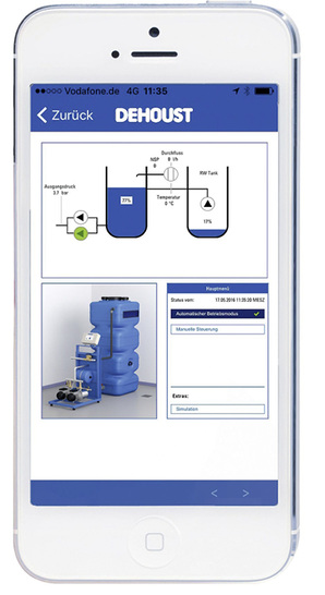 Mit Connect bietet Dehoust eine einheitliche Basis für smarte Betriebswasseranwendungen. Eine Steuerung sorgt für den Datenaustausch zwischen Betriebswasseranlage und Smartphone bzw. Tablet. Alle wichtigen Daten werden auf den Dehoust-Server übertragen und von dort selektiv und nach Absprache mit dem Kunden an Betreiber, Hausmeister, Installateure oder auch den Dehoust- Kundendienst geleitet. Wenn gewünscht, kann die Betriebswasserversorgung am Punkt der Verwendung auf Durchfluss überprüft und Störungen direkt aufs Handy übermittelt werden.