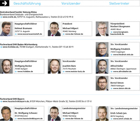 Diese Seiten sowie ein A3-Poster mit den Spitzenvertretern des SHK-Handwerks finden Sie unter www.sbz-online.de/extras und www.sbz-online.de/links .