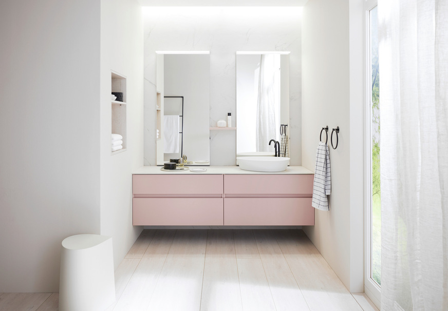 Mit dem Systemlinien-Programm sys30 von Burgbad lassen sich Stauraum-, Waschtisch- und Konsolenlösungen anpassen – beispielsweise in Bezug auf Maße und Farben. Mit dem Programm können Elemente aus verschiedenen Kollektionen kombiniert werden.