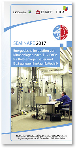 Unter dem Titel „Energetische Inspektion von Klimaanlagen nach § 12 EnEV für Kälteanlagenbauer und Ergänzungstag Raumlufttechnik“ setzt der Fachverband Gebäude-Klima e. V. seine Seminarreihe im Herbst und Winter fort. Das Angebot richtet sich an Kälteanlagenbauer, Kältetechniker und Mechatroniker für Kältetechnik, Ingenieure und Fachleute aus dem TGA-Bereich. Veranstaltungstermine sind: