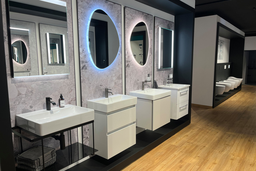 Mit der neuen Struktur spart das Ausstellungskonzept nicht nur Platz – es beschleunigt auch Prozesse. Das gilt für Kund:innen, die fokussierter und ohne Ablenkung zum Ziel kommen, ebenso wie für die Badexpert:innen bei Badpunkt. Sie profitieren von mehr Flexibilität, denn die modularen Displays erleichtern schnellere Umbauten für die Präsentationen von Neuheiten. ■
