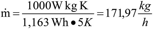 Mein Massenstrom hat sich durch diesen notwendigen, weil leistungserhaltenden Kunstgriff erheblich verändert. Man könnte jetzt schon ahnen, dass bei einem Drittel der ursprünglichen Spreizung von eben noch 15 K nun, bei nur noch 5 K Spreizung der dreifache Massenstrom notwendig sein wird. Die Nachrechnung bestätigt diese Annahme: