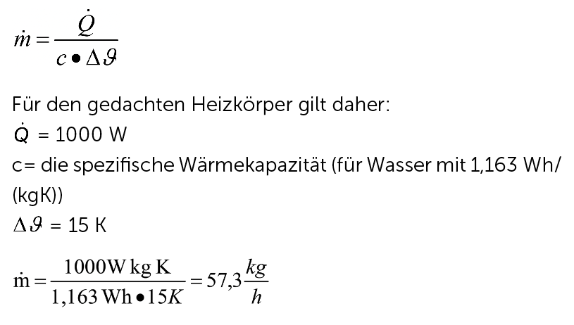 Es sollten also 57,3 kg/h als Massenstrom durch diesen Heizkörper fließen. Daher muss auch das Rohrsystem zu diesem Heizkörper für diesen Massenstrom geeignet sein.