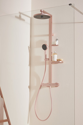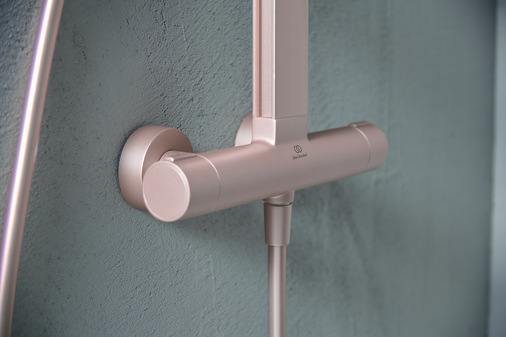 Das neue Duschsystem ALU+ von Ideal Standard ist in drei mattierten Oberflächen erhältlich, Silk Black, Rosé und Silver.