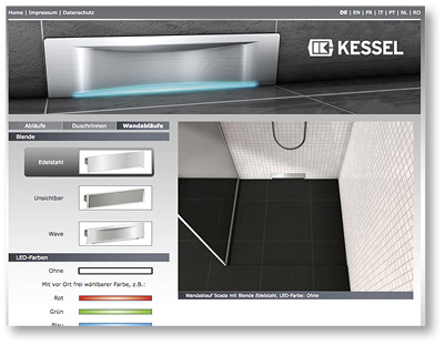 Bei der Badplanung kommt es auf jedes Detail an. Dazu gehört auch, dass der Ablauf perfekt zu den Einbauvoraussetzungen und der Gestaltung des Raumes passt. Mit dem Produktkonfigurator auf der Kessel-Website finden Interessierte schnell den passenden Punktablauf, die richtige Duschrinne oder den optimalen Wandablauf. Planer und Bauherren können mit dem Konfigurator unter kessel.de/produkte/ablaeufe-und-rinnen die Produktvarianten an den verschiedenen Positionen in der Dusche einplanen und sie mit unterschiedlichen Bodenbelägen kombinieren. „Damit verschaffen sich die Nutzer direkt einen Eindruck davon, wie der Ablauf im Bad später wirkt und was am besten zum Design passt“, sagt Reinhard Späth, Leiter Marketing bei der Kessel AG. Ist das richtige Produkt gefunden, können Planer und Bauherren ein PDF mit einem Bild vom Ablauf in der entsprechenden Einbausituation und den wichtigsten Produktinformationen ausdrucken.