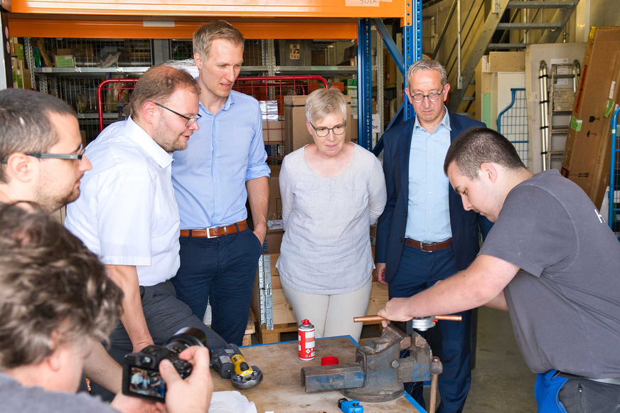 Daniel Terzenbach, Vorstand Regionen der Bundesagentur für Arbeit und Sonderbeauftragter der Bundesregierung für die Arbeitsmarktintegration von Geflüchteten, besuchte den Ausbildungsbetrieb Häfele Haustechnik in Göppingen, um sich über die Nachwuchssicherung im Handwerk und die Transformationsleistung des inhabergeführten Familienbetriebs auszutauschen.