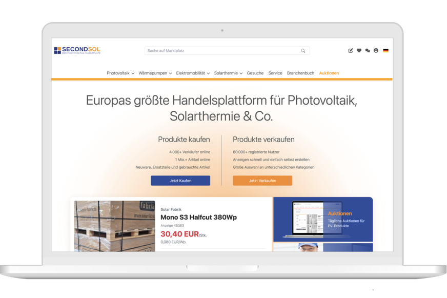 Secondsol, Online-Marktplatz für erneuerbare Energien, erweitert sein Angebot: Ab sofort können auf der Plattform neben Photovoltaik-Produkten auch Wärmepumpen, Wasserspeicher, Heizstäbe, Wärmepumpenpakete und Ersatzteile für Wärmepumpen gehandelt werden.