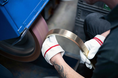 Kunstfertig wird die Oberfläche aufbereitet. In handwerklicher Bearbeitung werden zunächst kleine Oberflächenfehler vom ReCrafted-Werkstück beseitigt. Für glänzende Oberflächen wird der Metallkörper poliert. Für gebürstete Oberflächen wird der Bürststrich in genau definierter Laufrichtung aufgebracht.