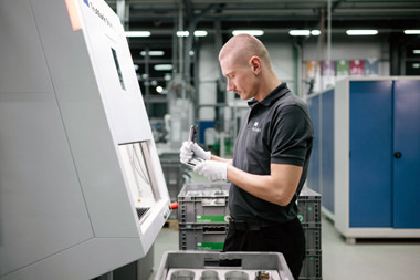 Jedes Produkt wird markiert. Per Laser wird das wiederaufbereitete Produkt unverwechselbar als ein Dornbracht ReCrafted-Original gekennzeichnet.