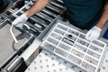 Funktionsteile werden fabrikneu ergänzt. Bei der Kommissionierung werden die benötigten Bauteile vervollständigt, wobei neue Funktionsteile, wie beispielsweise Mischerkartuschen, Dichtungen und Strahlregler, hinzugefügt werden.