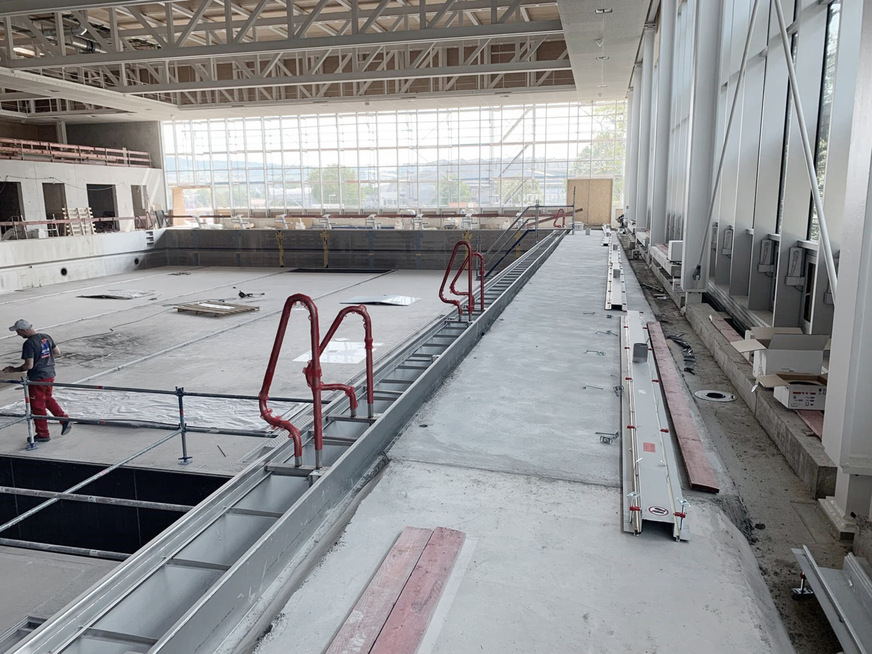 Leistungssportler, aber auch Schulklassen und die Öffentlichkeit finden hier optimale Bedingungen, um ganzjährig Schwimmsport unter Wettkampfbedingungen auszuüben. Das 44-Mio.-Euro-Projekt, planmäßig in rund zweieinhalb Jahren errichtet, verfügt über ein 50-m-Becken mit acht Bahnen, die sich durch eine flexible Wand in 16 kürzere Strecken unterteilen lassen; und ein 25-Meter-Becken mit Sprungturm und einem Hub-Boden, dessen Wassertiefe von drei Meter bis auf wenige Zentimeter für den Schulunterricht verringert werden kann.