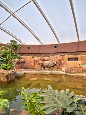 Die Panzernashörner erhielten ein weitgehend artgerechtes, ihrem natürlichen Lebensraum an indischen Flussufern nachempfundenes Zuhause. Auf rund 14 000 m2 wurde ein naturnahes Sumpfgebiet gestaltet, inklusive einer 5000 m2 großen Wellness-Landschaft. Eine nachhaltige und belastbare Lösung für das Abwasser fand sich mit dem Kanalschacht Awaschacht PP.