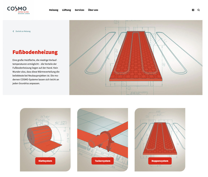 sich Cosmo jetzt mit einem modernen und aufgeräumten Auftritt. Im Profibereich findet der Fachhandwerker alle für ihn relevanten Inhalte, im Endkunden-Bereich macht der Hersteller seine Kompetenz in den Bereichen Heizung und Lüftung für jedermann greifbar.