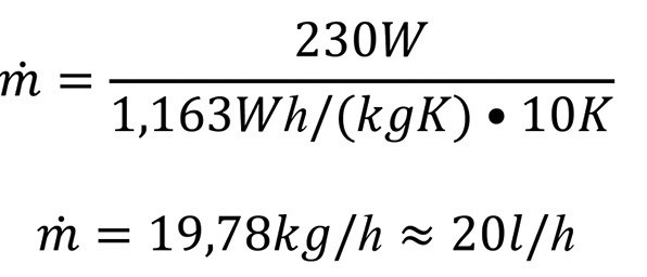 und eingesetzt für den Heizkörper mit 230 W bei 10 K Spreizung