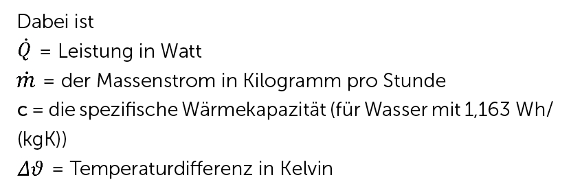 Wir setzen in diesem Fall also voraus, dass 1 kg Wasser einem Volumen von 1 l entspricht. Das ist für die meisten Berechnungen im Heizungsbau völlig ausreichend.