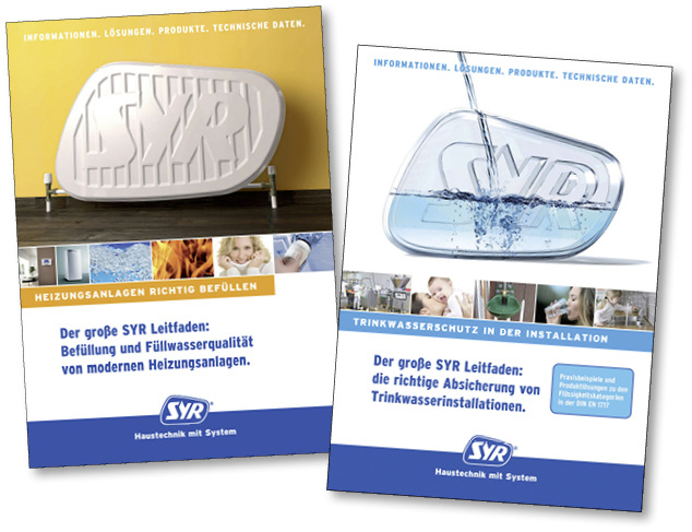 Für die richtige Absicherung von Trinkwasser und die normgerechte Befüllung von Heizungsanlagen stellt die SYR Hans Sasserath GmbH zwei Praxis-Leitfäden zur Verfügung mit allen wichtigen Informationen. Der Leitfaden „Die richtige Absicherung von Trinkwasserinstallationen“ gibt Hinweise zur Einteilung der unterschiedlichen Flüssigkeitskategorien von 1 bis 5, deren Definitionen sowie zu entsprechenden SYR-Lösungen. Im Leitfaden „Befüllung und Füllwasserqualität von modernen Heizungsanlagen“ werden neben