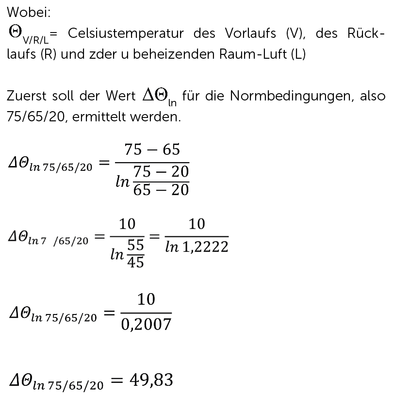 Normbedingungen für einen Heizkörper sind also 75/65/20 für Vorlauf/Rücklauf/Raum.