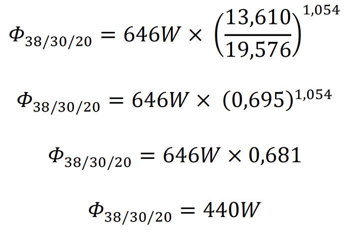 Wer auch immer diese Testtemperatur festgelegt hat, hat auch gleichzeitig eine Formel zur Umrechnung der Leistung für andere Betriebsbedingungen gestiftet.