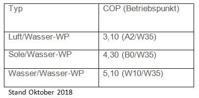 Sie lesen jetzt noch bei jeder COP-Angabe zu einem Betriebspunkt ein Kürzel. Und der schränkt die Messbedingungen ein.