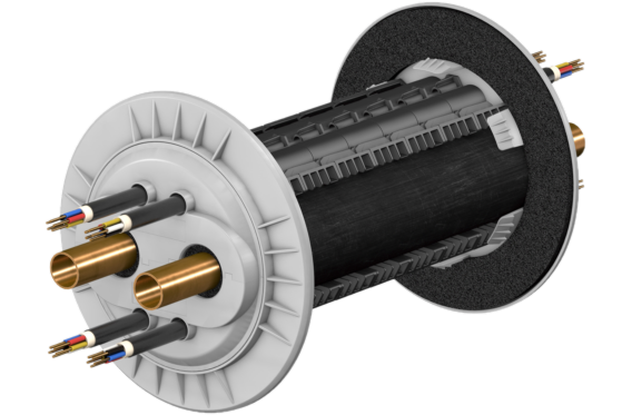 Doymafix HP/O von Doyma ist eine oberirdische Wanddurchführung für alle Leitungen von LW-Wärmepumpen – für Neubau und Bestand. Die Verlegung der Rohre und Kabel kann getrennt erfolgen. Auch Spannungs- und Steuerleitungen sind voneinander separiert. Das System ermöglicht die GEG-konforme Sicherstellung der Wärmedämmung – unabhängig von Wandaufbauten und -stärke.