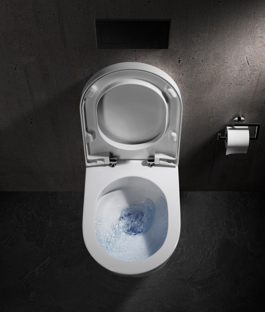 Repabad präsentiert das neue, spülrandlose WC IL 54 mit Cyclonic Flush-Spülvorgang, der für eine effiziente Verwirbelung des Wassers sorgt und die Keramik vollflächig ausspült.