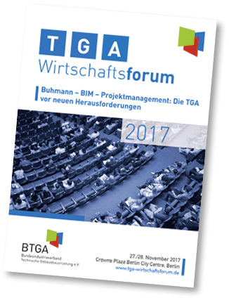 Am 27. und 28. November 2017 findet in Berlin ein interdisziplinäres TGA-Wirtschaftsforum statt. Ziel ist, die Kommunikation zwischen der Technischen Gebäudeausrüstung, dem Projektmanagement und der Projektsteuerung auf wirtschaftlicher und juristischer Ebene zu intensivieren. Unter anderem werden folgende Themen behandelt: „Einführung der BIM-Methode im TGA-Anlagenbau“, „Auswirkungen des Bauvertragsrechts auf die TGA-Anlagenbauer“, „Von der Energie- zur Gebäudewende“ sowie „Die TGA als Buhmann im Bauprozess“. Weitere Informationen, Preise und das Anmeldeformular finden Sie unter:
