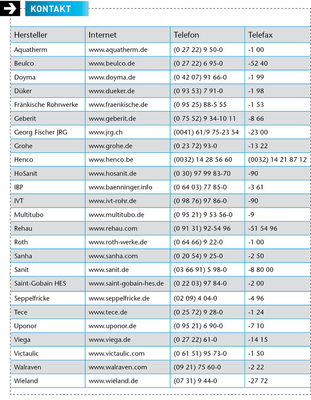Temperaturbeständige Dichtbandage: Ein Korrosionsschutz für Rohrverbindungen und Rohre ist die neue Geberit-Dichtbandage. Das Material hält Temperaturen zwischen –60 °C und +100 °C stand. Diese Eigenschaft macht die Dichtbandage universell einsetzbar. Sie wird mit einer Länge von 12,5 m in den Breiten 3 und 5 cm angeboten.