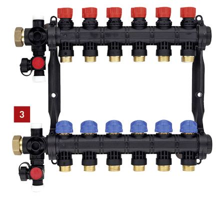 Ventile: Das Unternehmen Watts Water Technologies bietet mit seinen Ventilen der Serie MH eine dynamische Abgleicheinrichtung an. Diese gewährleistet eine konstante Durchflussmenge in Flächenheizungssystemen. Das System kann mit einer statischen Abgleicheinrichtung auf den Auslegungspunkt für seinen höchsten Bedarf eingestellt werden. Die dynamische Abgleicheinrichtung gewährleistet eine optimale Leistung unter allen Betriebsbedingungen. Die Ventile der Serie MH vereinen die Funktionsprinzipien von statischem und dynamischem Abgleich in einem Produkt. Mit den MH-Ventilen wird die Durchflussmenge in jedem einzelnen Flächenheizkreis über die Druckdifferenz konstant gehalten. Der Ist-Durchfluss lässt sich an den integrierten Durchflussmessern am Verteiler ablesen. Der hydraulische Abgleich wird in drei Schritten durchgeführt: Beim Anfahren sind die Abzweige noch ohne Abgleich, ehe die Durchflussmenge am hydraulisch ungünstigsten Heizkreis – erkennbar am geringsten Durchfluss – über das MH-Ventil eingestellt wird. Anschließend folgt die gewohnte Durchflusseinstellung bei allen anderen Verteilerabgängen. Eine Nachjustierung, die durch das Einregulieren weiterer Verteiler oder Ventile notwendig wäre, erübrigt sich dadurch.