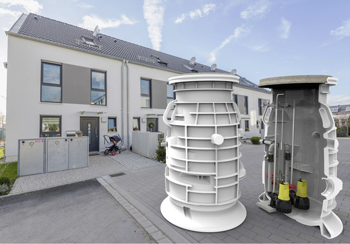 Schacht zur Grundstücksentwässerung: Pentair Jung Pumpen stellte in Frankfurt den neuen Kunststoffschacht SKS 800 vor. Die auftriebssicheren Schmutz- und Drainageschächte werden in der Grundstücksentwässerung eingesetzt. Eine Hofeinfahrt lässt sich damit genauso entwässern wie Drainagewasser, welches aufgrund von fehlendem Gefälle nicht direkt der Regenwasserkanalisation zugeführt werden kann. Ausgestattet werden die Schächte wahlweise mit einer oder zwei Pumpen. Die Schächte sind für den begehbaren (Klasse A 15) oder für den mit einem Pkw befahrbaren Bereich (Klasse B 125) geeignet. In der neuen Schachtgeometrie können 1¼"-, 1½"- oder 2"-Pumpen mit einem Fördervolumen bis zu 54 m³/h und einer Förderhöhe von 16 m eingesetzt werden. Soll aus Sicherheitsgründen eine Redundanz geschaffen werden, ist die Installation zweier parallel arbeitender Pumpen möglich. Eine zweite Pumpe kann auch später nachgerüstet werden.
