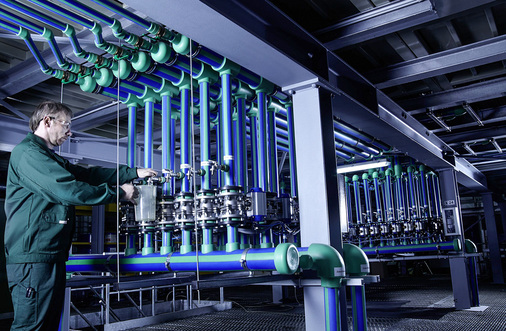 Durchflusswandscheibe: Zudem haben die Attendorner die Systeme Aquatherm green pipe und Aquatherm grey pipe um eine Durchflusswandscheibe ergänzt. Mit der neuen Durchflusswandscheibe soll sichergestellt werden, dass auch wenn einzelne Armaturen in der Trinkwasserinstallation nicht regelmäßig benutzt werden, immer der gesamte Wasserinhalt der Reihen- bzw. Ringleitung regelmäßig ausgetauscht wird, weil die am häufigsten benutzte Armatur (meistens WC) eine Stagnation ausschließt.