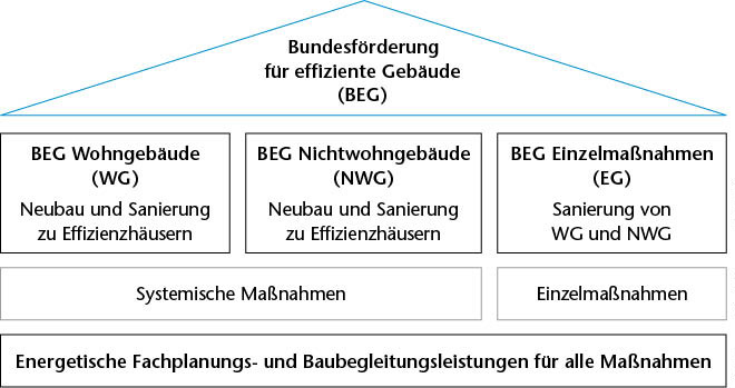 Die BEG ist in eine Grundstruktur mit drei Teilprogrammen aufgeteilt: